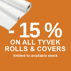 Tyvek promotion!To celebrate the introduction of Tyvek painting covers to our catalog, we are offering an exceptional 15% discount on both sizes in stock, as well as on Tyvek rolls (grades 1442R & 1623E, widths 1.52 or 3.05 m).This promotion is available from November 27 to December 18, 2025, while supplies last. It cannot be combined with quantity discounts and shipping costs are extra.